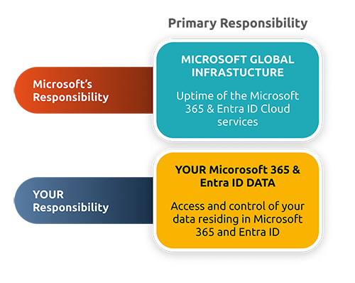 Organizations rely on Microsoft 365 and Entra ID for daily collaboration, workflows, and user management. While these platforms ensure reliability, data protection and recovery fall under the customer’s responsibility according to Microsoft’s shared responsibility model.